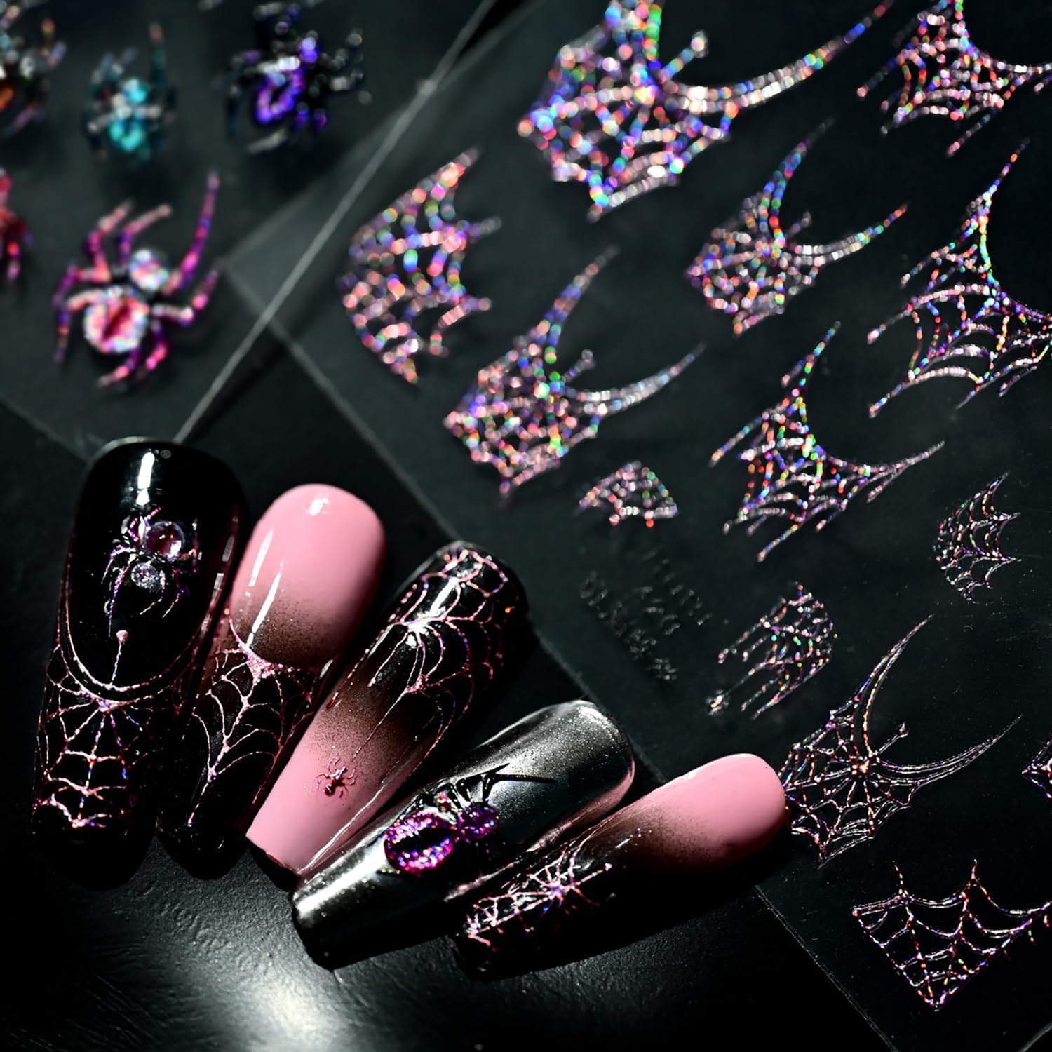 - Self-Adhesive Design: 5D self-adhesive pink spider web nail decals for nail art design is simple and quick to use, spider web nail art decals work great on bare nails, they will stay on for a long time and will not peel off your nails, enjoy the feeling of nail art