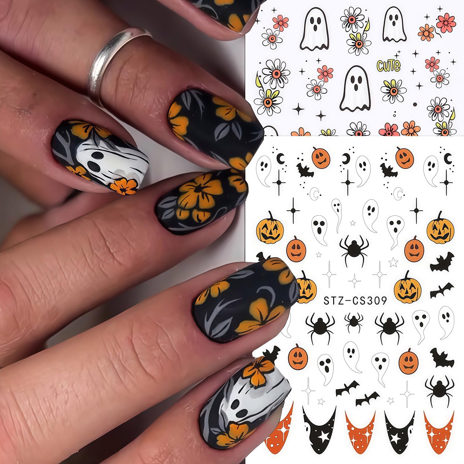 - Quantity: You will get 6 sheets of ghost nail art stickers, including cute ghost and flower, french tip designs, not easy to fall off or fade, can easily create a variety of themed nail art, meet various nail art needs