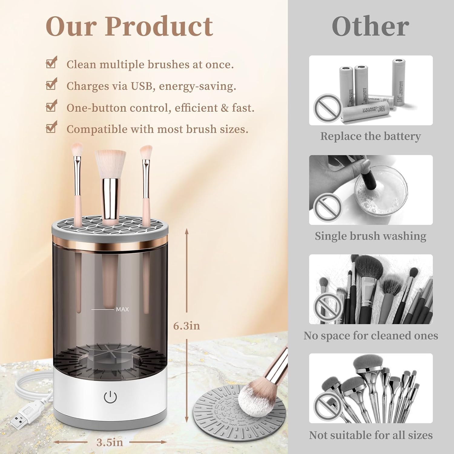 - Efficient and Quick Cleaning: Our makeup brush cleaner utilizes advanced cleaning technology to thoroughly clean a wide range of brushes in a short time, saving you both time and effort, and leaving your brushes looking brand new.